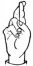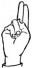На ћирилици написано БУДИМИР РУХТЕСКИ састоји се из 15 слова [?]. Исписано ћириличном једноручном азбуком за глувонеме: